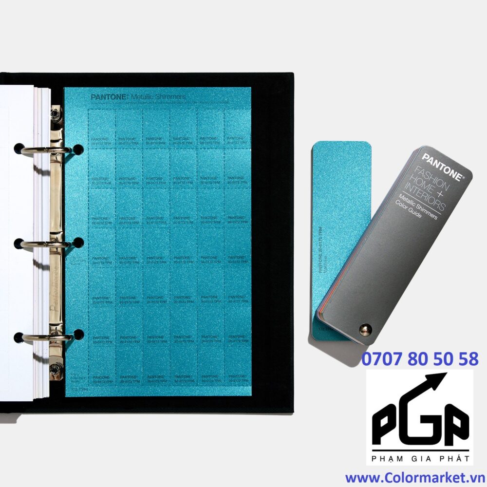 - Cuốn Pantone 1 cuốn với 200 màu Metallics Shimmer trong định dạng kết dính vào cuốn để bàn.
